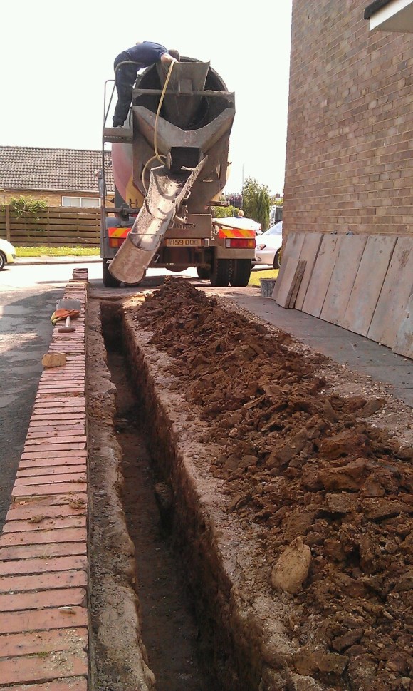 The drive had a soil/clay base and was subsiding through use. The solution was to dig a 650mm deep