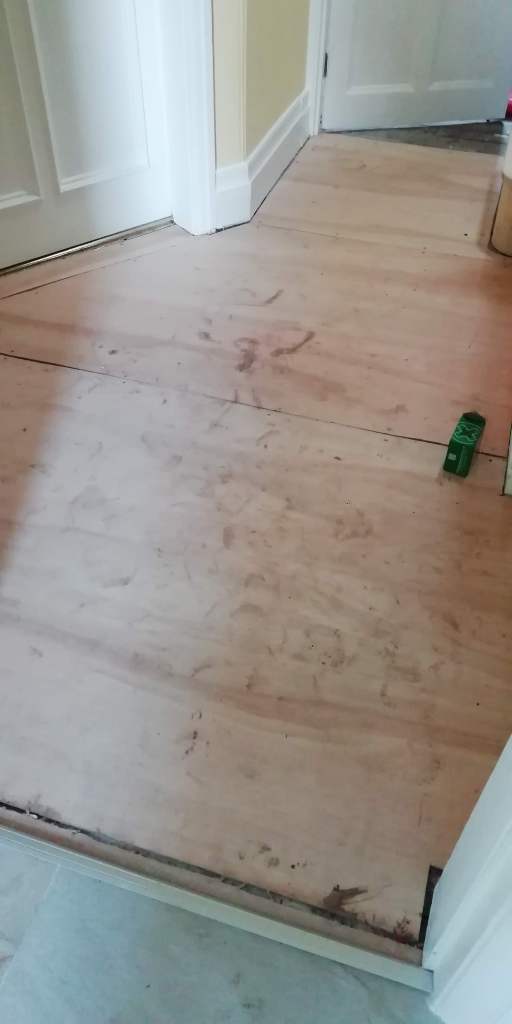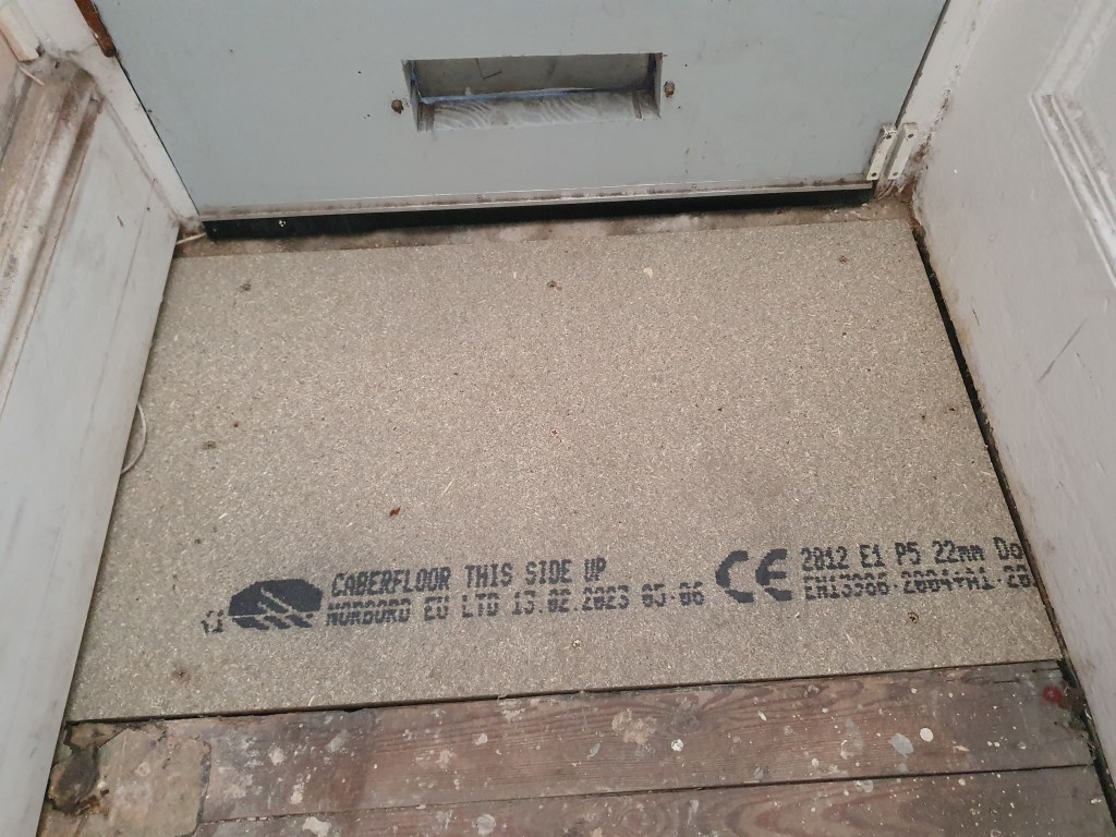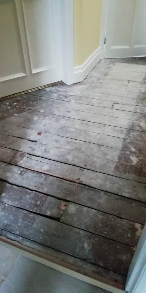 The carpet is to be fitted but before this can happen the floorboards are in a bit of a state after the pipe work was fitted for the central heating.