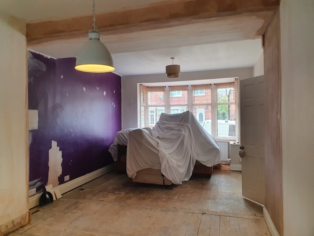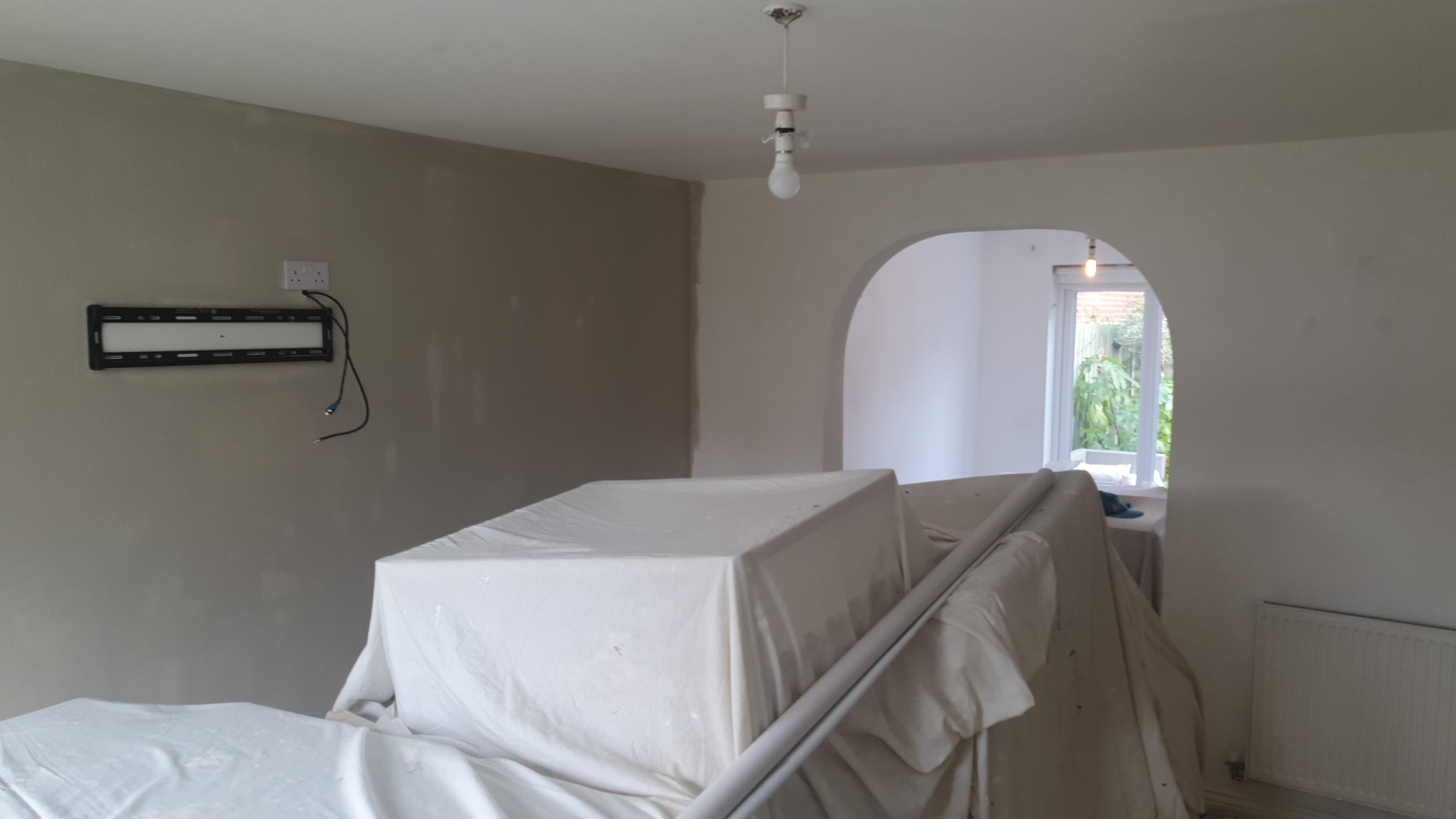 It is always best to paint a room that is clear of furniture and furnishings but that’s not alway the case, in fact it is mostly the case, after all we live in our homes! It took me nearly 2 hours to get this sitting and dinner clear and under dust sheets with the sofas, tables and TV having to be moved and covered.