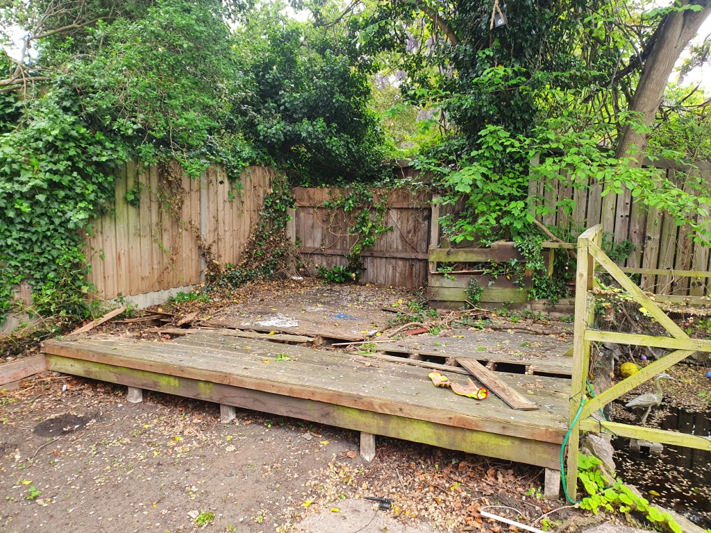 Using a chain saw and a circular saw l quartered the area and stacked it ready for the rubbish collection.