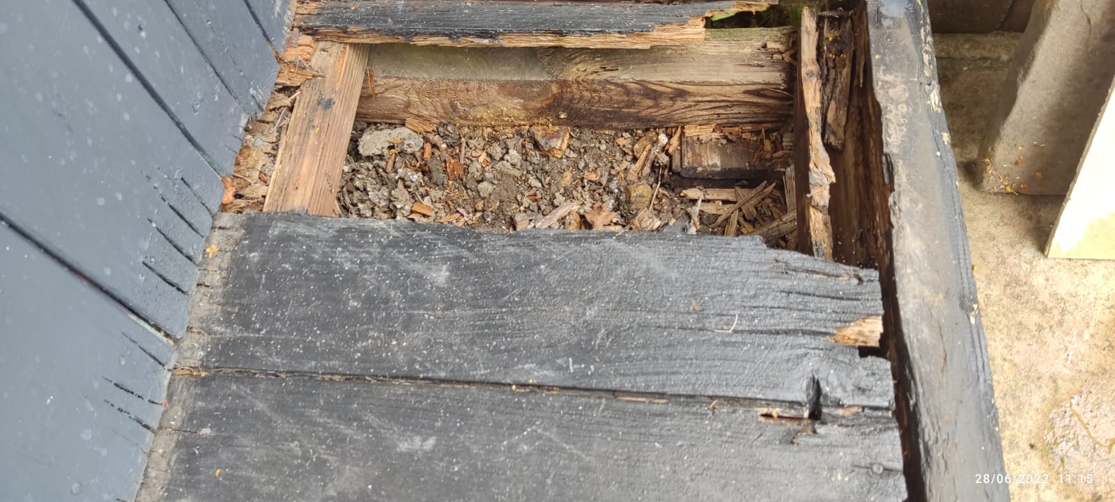 Here you can see how the joist by the front door have rotted slightly over the years.