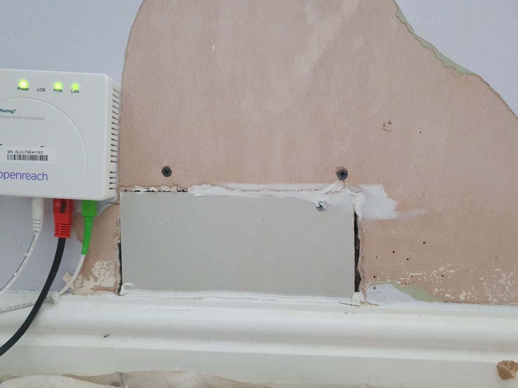 Unfortunately for the BT engineer they didn’t check and drilled through these pipes. It took a month for the home owner to release water was slowly dripping out and damaging the floor.