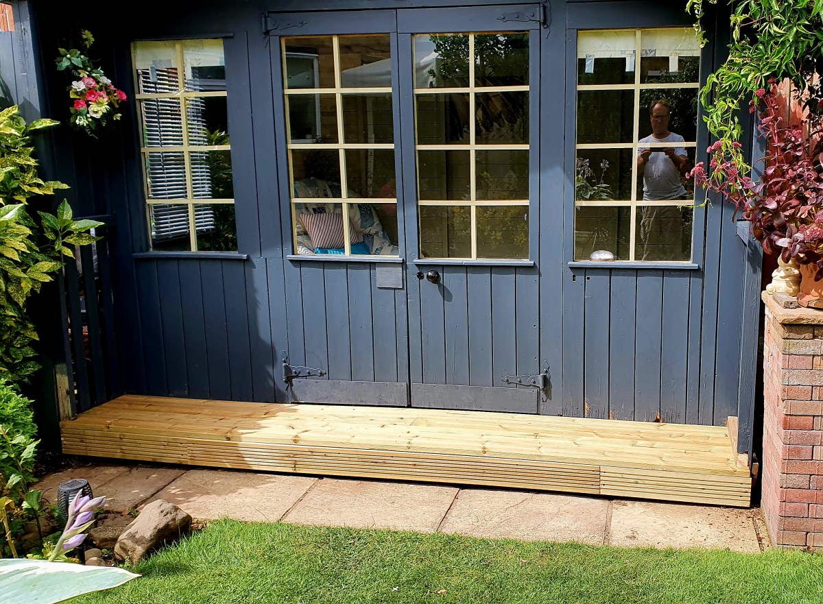 Looking great. No not me, the decking and summer house. Just needs painting.
