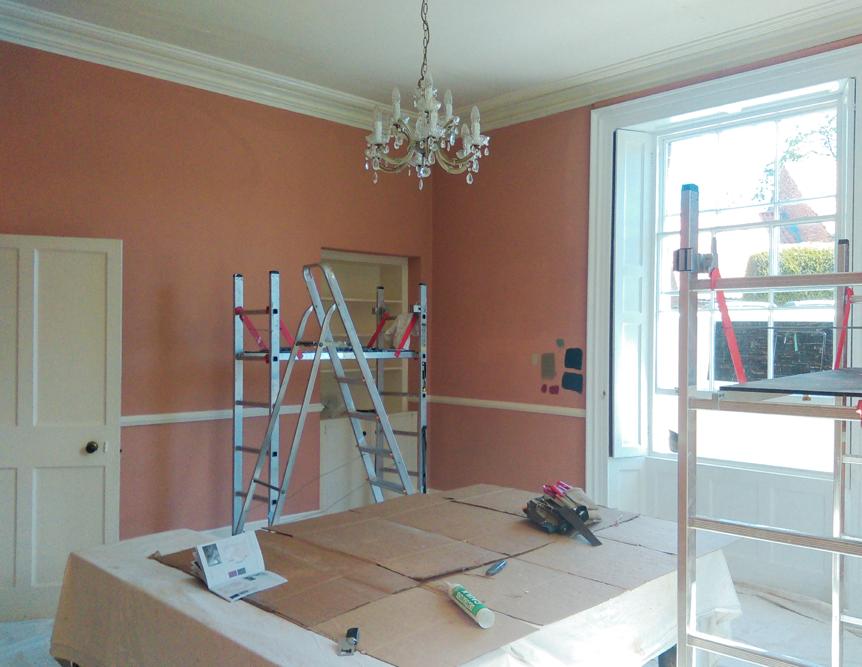 Mostly I am working in lived in homes, it’s great when you have and empty house to decorate but that’s not very often the situation. So, it’s important to have the room cleared as much as possible and get those dust sheets down covering all surfaces including the bed!