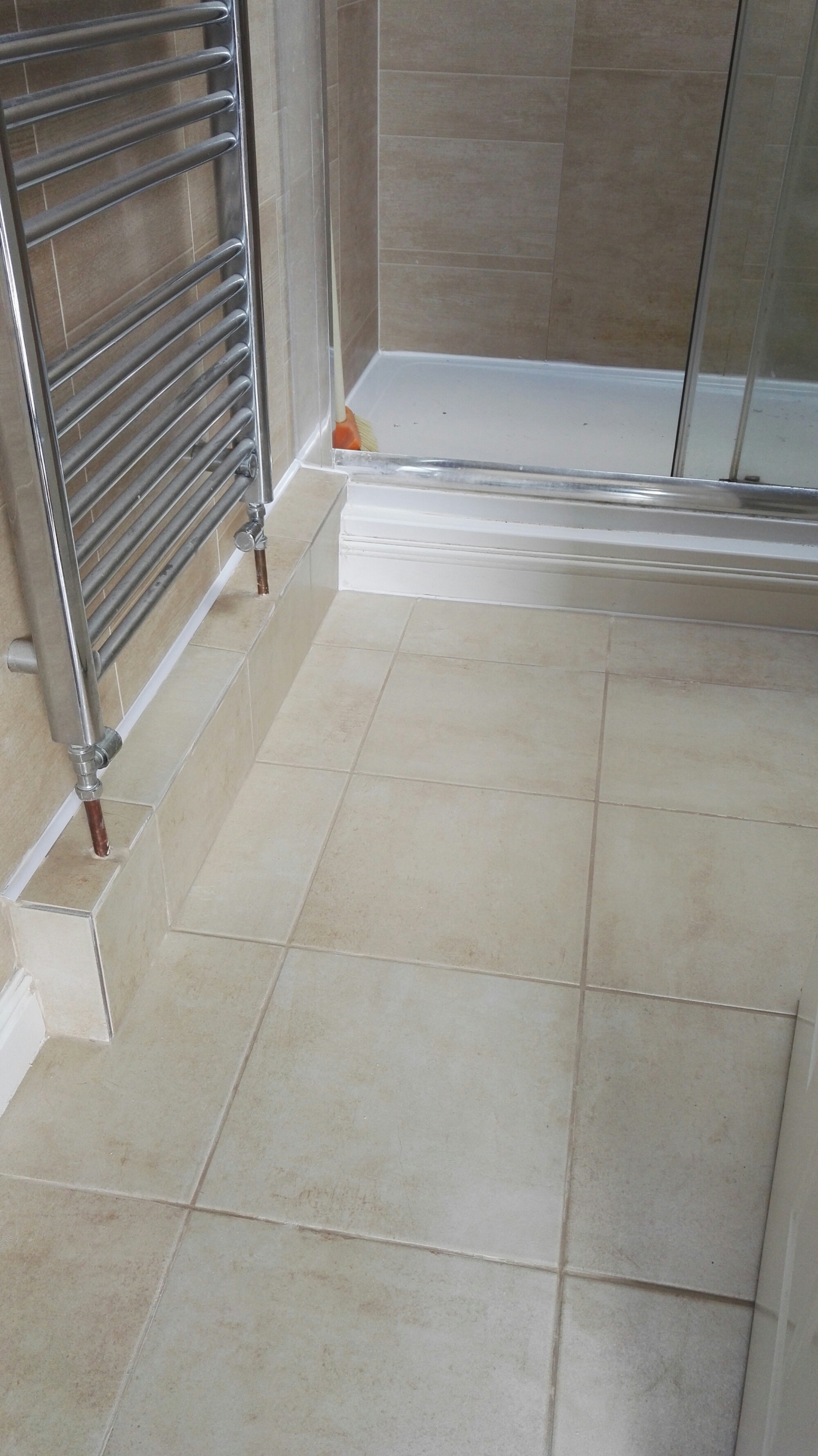 After the tile adhesive is dry time to grout and add silicone to the edges.